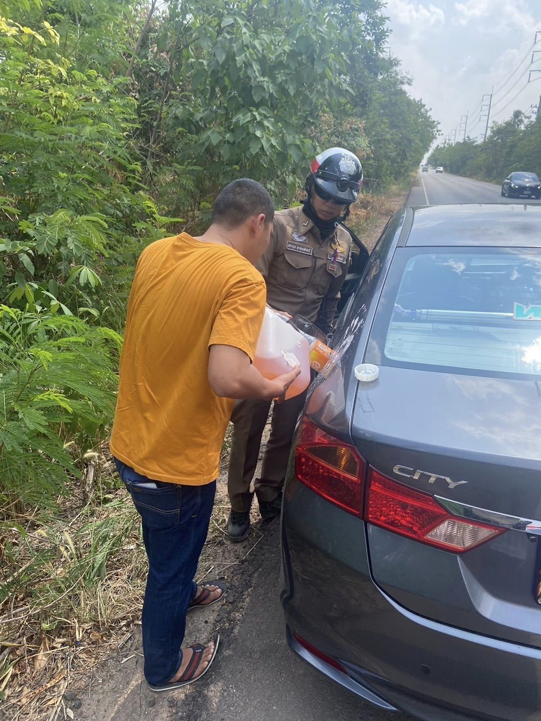 ร.ต.ท.อิทธิภัทร ศรีษะนาราฎร์ รอง สว.(จร.)สภ.ซับใหญ่ พร้อมด้วย ส.ต.ต.นราธิป สืบสำราญ ผบ.หมู่(ป.)สภ.ซับใหญ่ และ ส.ต.ต.สราวุธ พรหมพักตร์ ผบ.หมู่(ป.)สภ.ซับใหญ่ ได้รับแจ้งจากศูนย์วิทยุ สภ.ซับใหญ่ เหตุขอความช่วยเหลือรถยนต์เก๋งนํ้ามันหมด บริเวณหน้าที่ว่าการอำเภอซับใหญ่ ถนนสายซับใหญ่ – หนองบัวระเหว เจ้าหน้าที่ตำรวจจราจรได้ออกช่วยเหลือนํ้ามันมาเติมให้ จึงสามารถเดินทางต่อไปได้