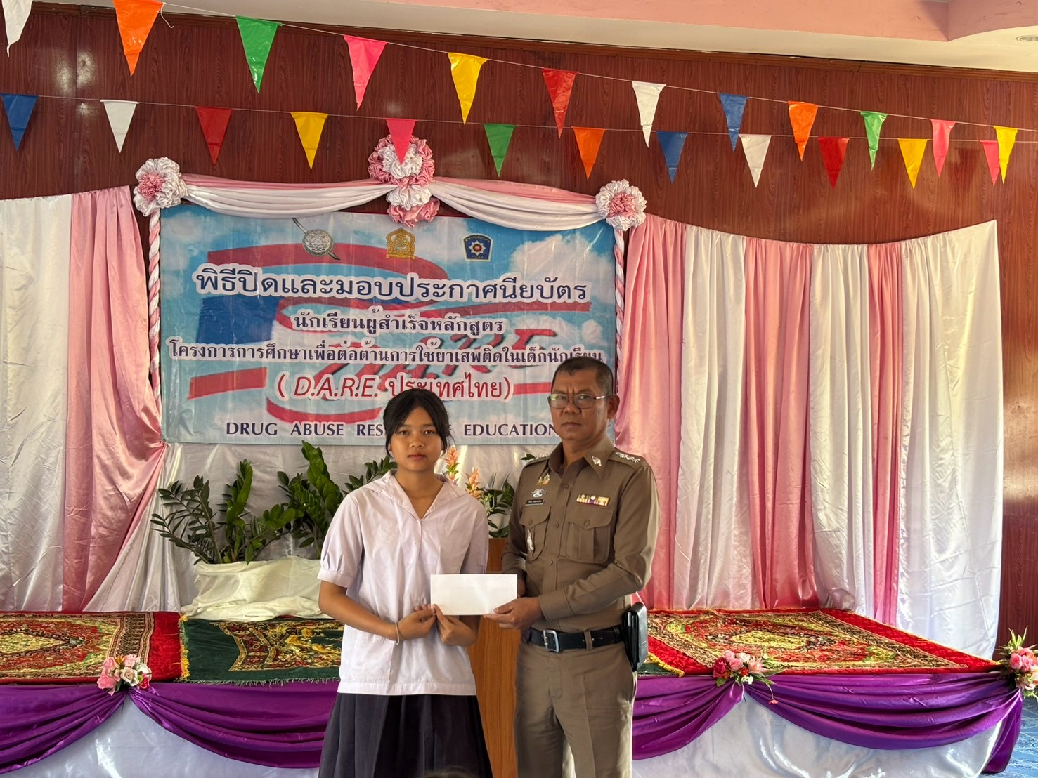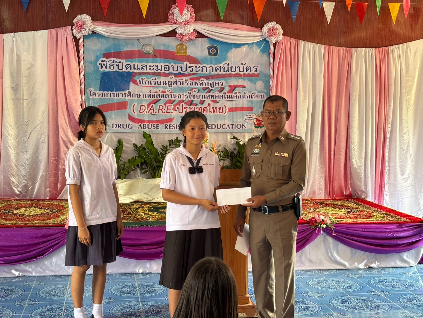 เป็นประธานในพิธีปิดและมอบประกาศนียบัตรให้แก่นักเรียนผู้สำเร็จหลักสูตรโครงการการศึกษาเพื่อต่อต้านการใช้ยาเสพติดในเด็กนักเรียน (D.A.R.E ประเทศไทย) ให้กับนักเรียนโรงเรียนบ้านวังพง และโรงเรียนบ้านโนนสะอาด ต.ซับใหญ่ อ.ซับใหญ่ จ.ชัยภูมิ โดยมี