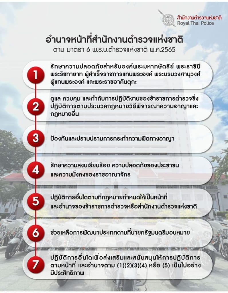 มีหน้าที่เกี่ยวกับการอำนวยการ การวางแผน การตรวจสอบติดตามและประเมินผลงานที่เกี่ยวกับนโยบาย ยุทธศาสตร์ และแผนงานของสถานีตำรวจ งานการบริหารบุคลากร งานจเรตำรวจงานกิจการพิเศษ งานความมั่นคง การศึกษา การฝึกอบรม งานวิชาการ สวัสดิการ การพัฒนา การบริหารจัดการ งบประมาณ การเงิน การพัสดุ การพลาธิการและสรรพาวุธ การส่งกำลังบำรุง รวมทั้งลักษณะงานอื่น ๆ ที่เกี่ยวข้องหรือเป็นส่วนประกอบของงานดังกล่าว เพื่อส่งเสริมหรือสนับสนุนการปฏิบัติงานของสถานีตำรวจ 2) งานป้องกันปราบปราม